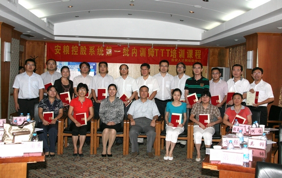 為科學(xué)開(kāi)發(fā)、有效講授培訓(xùn)課程,提高內(nèi)訓(xùn)師專(zhuān)業(yè)水平, 9月1—2日在合肥新世紀(jì)酒店,經(jīng)過(guò)公司本部和五大子公司推薦選拔的安糧控股系統(tǒng)首批內(nèi)訓(xùn)師20余人,參加了為期兩天的內(nèi)訓(xùn)師TTT培訓(xùn)。葛志毅副總裁到會(huì),代表公司為內(nèi)訓(xùn)師頒發(fā)了聘書(shū)并講話。