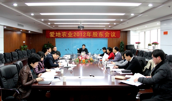 2012年2月1日,安徽省愛地農業科技有限責任公司(以下簡稱“愛地農業”)2012年股東會會議在盛安廣場15樓會議室隆重召開。安徽安糧控股股份有限公司、安徽省農科院、安徽省新榮久農業科技有限公司、安徽景山食品有限公司等六家股東的代表葛志毅、潘澤義、楊國榮等人出席了會議。股東推薦的董事、監事列席會議。會議由胡茂昶主持。