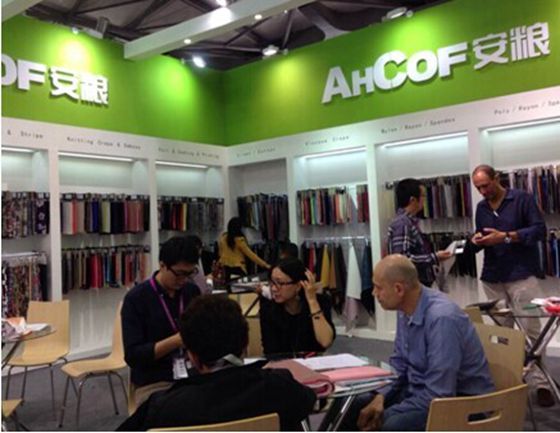 受國際經濟形勢及埃博拉病毒影響,此次展會參展客戶總數比往年有所減少。但安糧實業此次展會所接待的客戶數量及質量較往年有所提高,主推的燙金面料受到海內外客戶的高度關注與歡迎。安糧實業展位此次共接待了來自全球各地的百余位客商,其中不乏像ZARA、ESPRIT等全球知名品牌的買手,當場簽單數百萬美元。