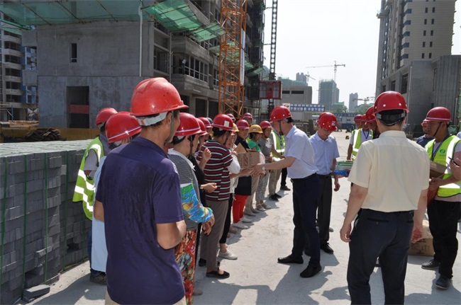 時(shí)至大暑,日盛三伏。23日上午9點(diǎn),曹訓(xùn)立書記一行來到由總承包分公司承建的濱湖碧桂公館項(xiàng)目部,慰問鏖戰(zhàn)酷夏的一線職工,為他們送去防暑降溫慰問品。曹訓(xùn)立書記與總承包分公司及項(xiàng)目主要負(fù)責(zé)人進(jìn)行了細(xì)致交流,叮囑公司和項(xiàng)目部要做好防暑降溫工作,合理安排施工時(shí)段,盡量避開高溫天氣,注意勞逸結(jié)合,給一線員工創(chuàng)造良好的工作環(huán)境,確保員工身體健康和施工安全,保障各項(xiàng)目工作有條不紊地開展。