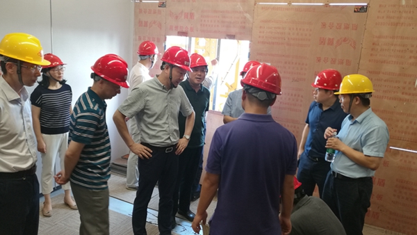 曹訓(xùn)立董事長(zhǎng)一行來(lái)到精裝修樣板層,參觀了獨(dú)立式辦公室、開放式辦公區(qū)、會(huì)議室等主要區(qū)域,對(duì)空調(diào)系統(tǒng)、電梯設(shè)備、墻地面裝飾材料等進(jìn)行了細(xì)致了解,并對(duì)會(huì)議中心提出了具體要求。