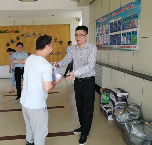 8月12日上午,安糧集團副總裁、安糧實業董事長吳國杰,赴安可福食品有限公司開展調研工作并代表安糧集團工會向一線人員工發放了礦泉水、仁丹、毛巾等防暑降溫用品,慰問奮戰在高溫生產一線的員工,叮囑大家在疫情期間尤其要注意做好防暑降溫,把身體健康放在第一位。