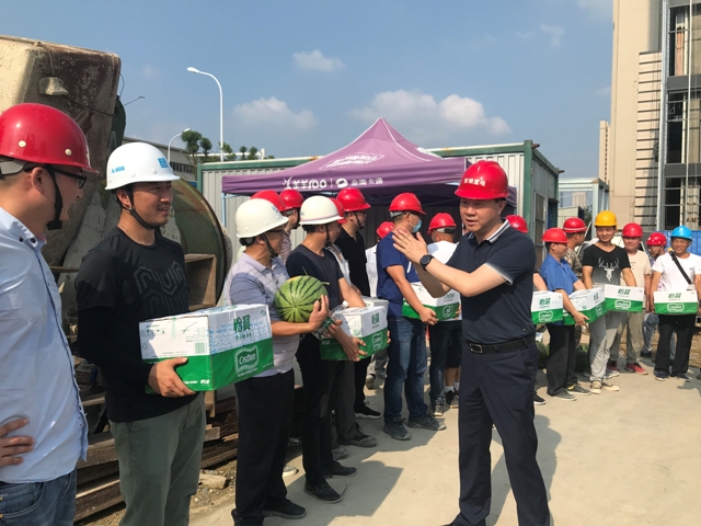 炎炎夏日送清涼,殷殷關懷鼓干勁。在持續的高溫天里,集團領導掛懷著項目一線員工的生產生活,情系項目基層一線,身體力行送清涼表達慰問和關懷,讓奮戰在項目一線的員工們在酷暑高溫里感受到了絲絲涼意。