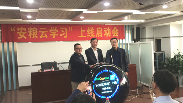 夢想從學習開始,事業從實踐起步。11月18日,安糧集團職工網絡學習培訓平臺-------“安糧云學習”------上線啟動會在盛安廣場18樓舉行,安糧集團黨委書記、董事長曹訓立,安糧集團黨委副書記、紀委書記孫毅與平臺供應商江蘇云學堂副總經理張杰共同啟動平臺,安糧系統各單位近60名員工作為學習代表見證了“安糧云學習”平臺正式上線。