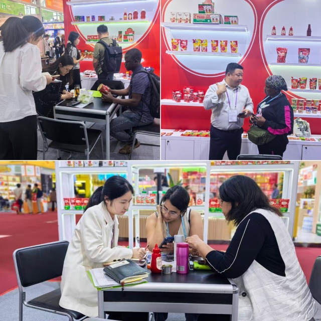 在食品展區(qū),本次以番茄沙司系列為核心,不僅推出青椒洋蔥味、蘑菇味等多款差異化創(chuàng)新口味,更搭配PET瓶裝、帶嘴立袋兩種新型包裝,融合獨(dú)特的南美風(fēng)味,憑借高顏值與優(yōu)口感贏得全球采購商青睞,市場反饋熱烈。截至目前,已與非洲、中東、東南亞及“一帶一路”沿線核心市場的采購商,初步達(dá)成十個貨柜的番茄沙司采購意向,覆蓋多區(qū)域主流消費(fèi)需求。