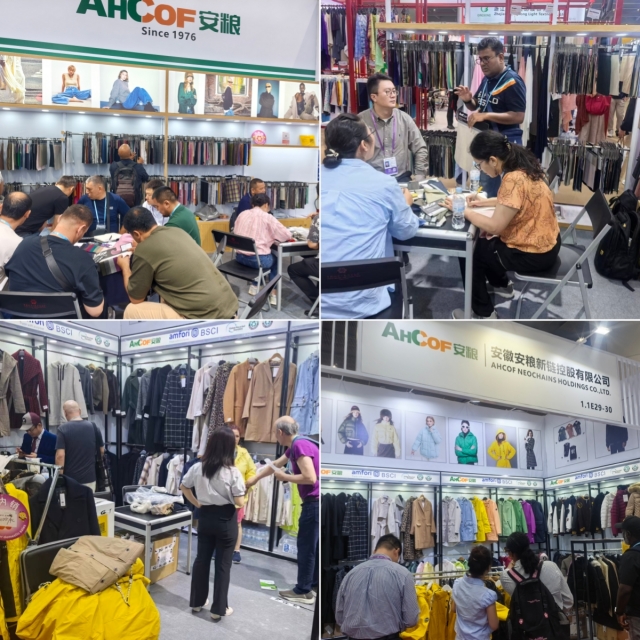 服裝展位則緊扣“綠色環(huán)保”與“工藝創(chuàng)新”兩大趨勢:棉服系列采用再生棉材質(zhì),精準(zhǔn)契合全球低碳消費(fèi)需求;PU雨衣類服裝應(yīng)用高頻工藝,無需縫線即可實(shí)現(xiàn)平整外觀,兼顧視覺美感與實(shí)用性能。這一系列創(chuàng)新產(chǎn)品成功吸引來自法國、英國、比利時等歐洲中高端市場采購商重點(diǎn)關(guān)注,已有多組客戶明確表達(dá)合作意向。